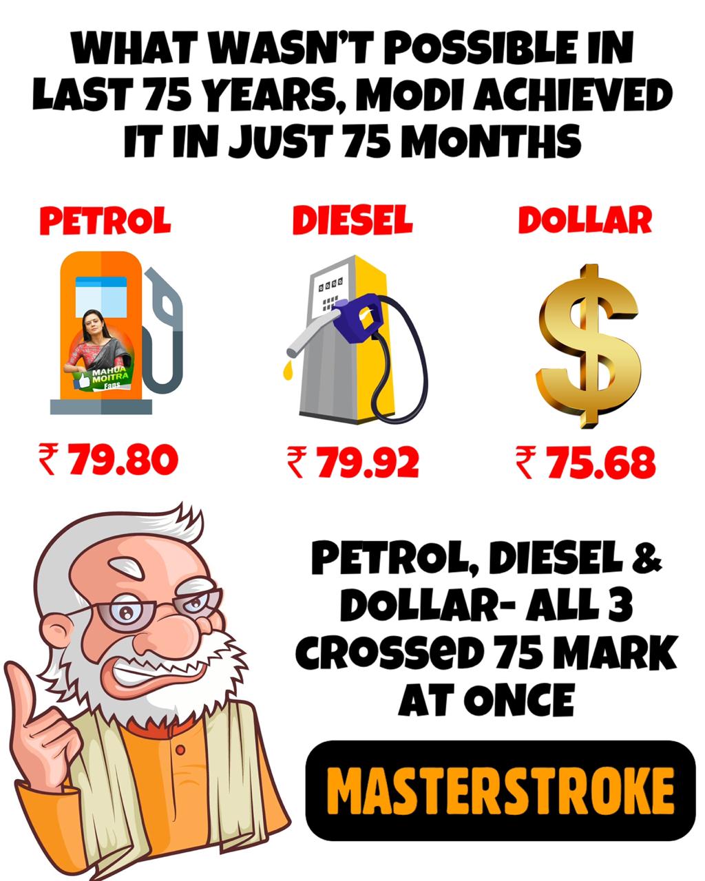 Amit Dabby On Twitter What Wasn T Possible In Last 75 Years Modi Achieved It In Just 75 Months Petrol Diesel Dollar 79 80 79 92 75 68 Petrol Diesel Amp Dollar All Three Crossed 75