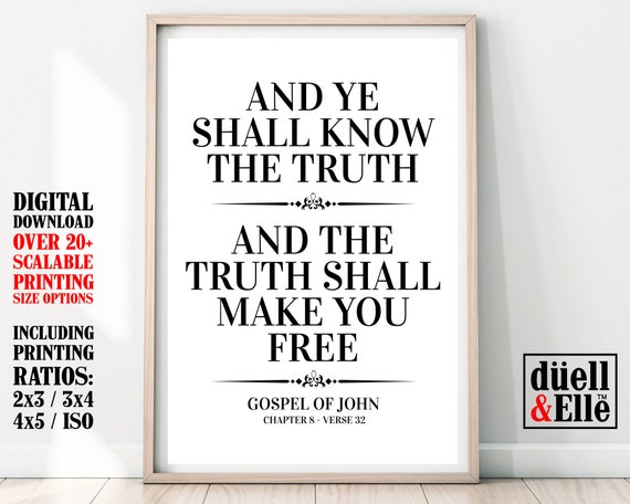 Gospel Of John Chapter 8 Verse 32 Bible Verse Prints Religious Etsy