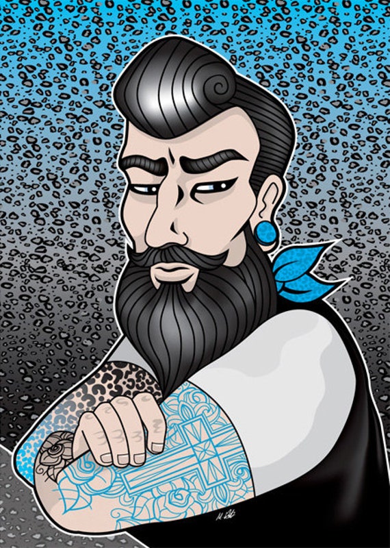 Bearded Biker Tattoo Card Birthday Beard Guy Greetings Card Etsy